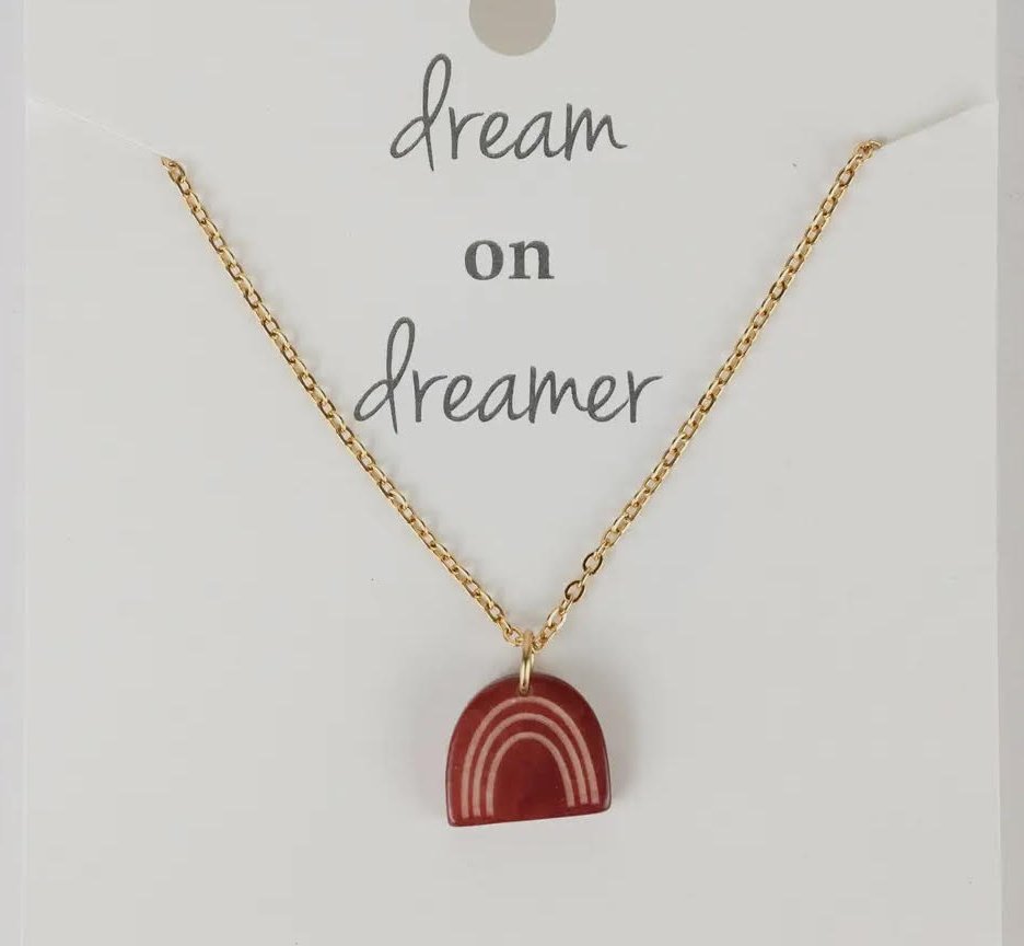 “Go on then, dream on, dreamer wearing this rainbow tagua charm as a symbol of possibility. Gift this to yourself or someone you care about as a lovely mantra, a little prayer-an intention to remind yourself that you can do it. Made from "vegetable ivory," a plant-based alternative to elephant ivory, this sustainably harvested nut is also used as an eco-friendly substitute for plastics. Handcrafted by makers with our artisan partner, Andean Collection in Ecuador.” - Ten Thousand Villages