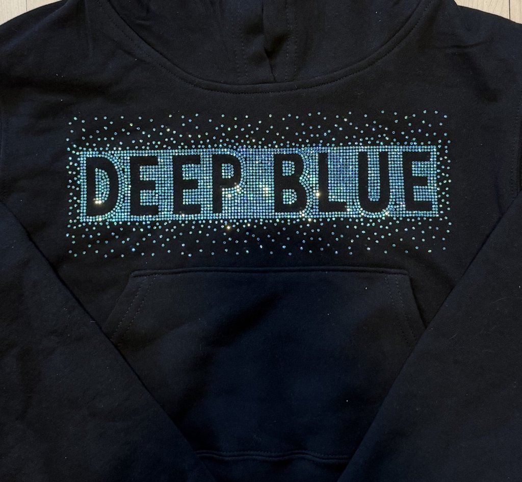 Black jogger set with blue rhinestones and crop hoodie