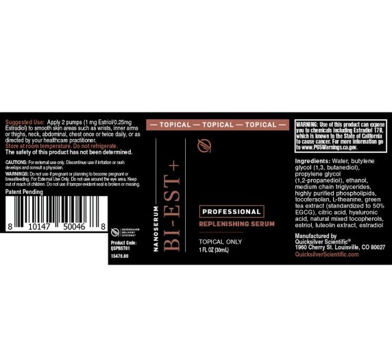 Nanoemulsified topical serum using estriol and estradiol derived from phytosterols, natural compounds used to synthesize bioidentical estrogens.