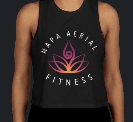 Logo Tank Top - black with white lettering and pink/orange lotus flower. Available in small, medium, large