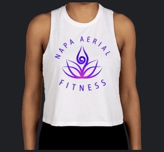 Logo Tank Top - White with purple and pink design. Comes in small, medium, large.