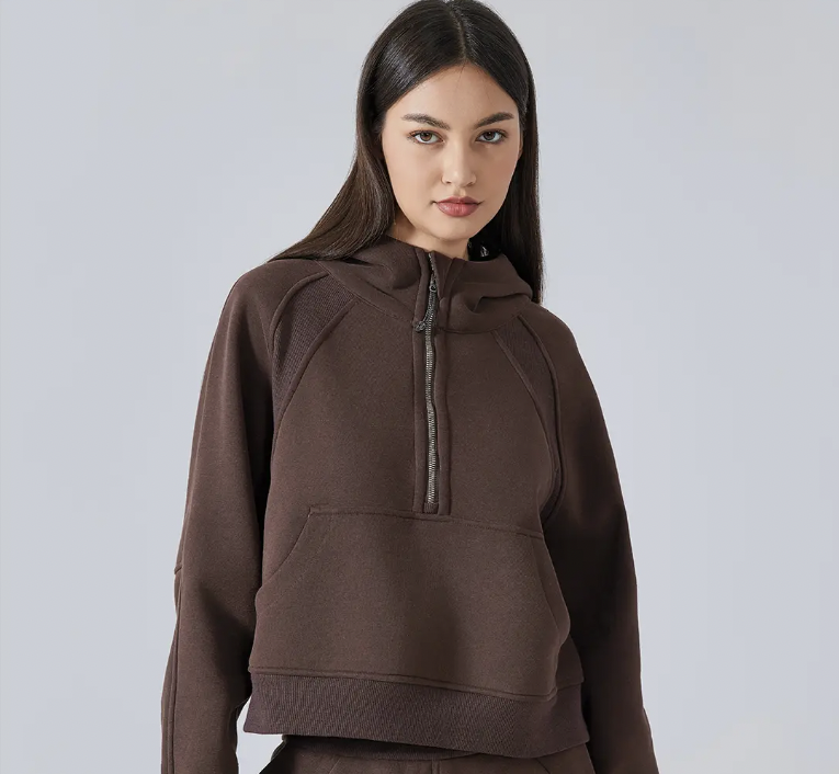Women Fall Winter Half Zipper Sweatshirt Big Pockets Hoodie