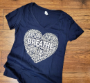 Moving Spirit's signature “Breathe” T-shirt in a women's fit with a v-neck.
