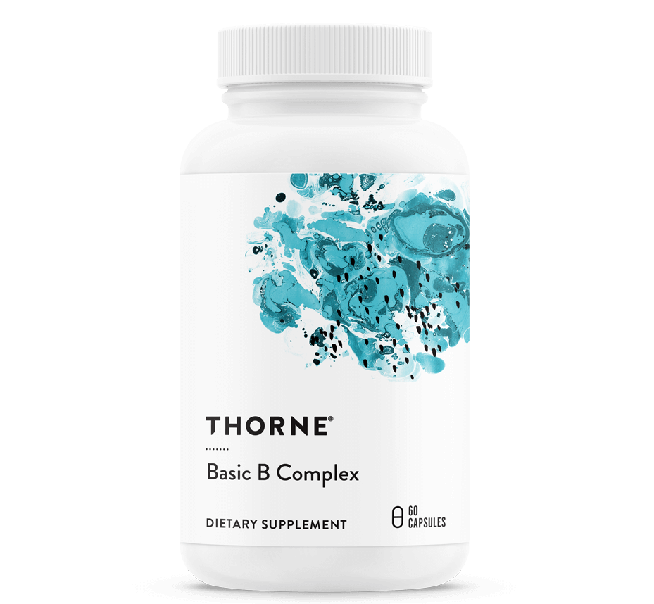 Thorne’s Basic B Complex formula contains the active forms of the B vitamins, making it easy for your body to absorb them. This comprehensive blend provides multiple benefits to support your lifestyle, such as helping convert food into fuel and enhancing cellular energy.* Because most B vitamins don’t remain in the body, they must be acquired from diet and supplementation to help maintain optimal health.*