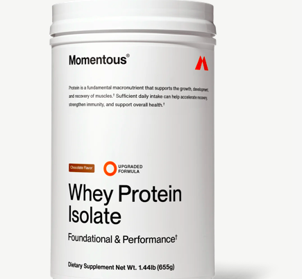 <button id="product-benefits-header-4" class="flex w-full text-black font-bold relative font-helvetica cursor-pointer text-base" aria-controls="product-benefits-content-4" aria-label="Function" aria-expanded="true">Function</button>Momentous Whey Protein Isolate is a high-quality, grass-fed whey protein designed for optimal performance, recovery, and daily muscle maintenance. Each serving delivers 20g of complete protein sourced from European dairy farms held to rigorous standards—meaning no hormones, steroids, or rBST. Ours is superior in that it’s cold-processed and micro-filtered, preserving the integrity of its amino acid profile while minimizing sugar, fat, and lactose.