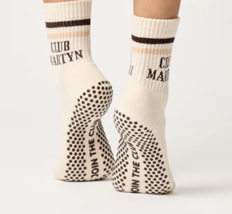 Introducing Club Martyn's signature crew sock. Featuring the iconic Club Martyn logo and signature “Join the Club” grip, these socks will stay in place whilst you stretch and move during class. Made from a breathable cotton fabric, these socks are the perfect blend of sporty chic and will help eliminate any slipping or sliding during your workout.