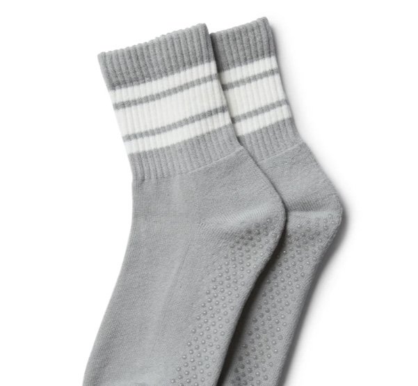 Inspired by a classic sports sock, the Retro Crew Grip Sock are the perfect pair of socks to add style to your workout look. Featuring an iconic sport stripe and a ribbed cuff, these socks will stay in place whilst you stretch and move during class. Made from a breathable cotton fabric, and featuring our signature “Join the Club” grip, these socks are the perfect blend of sporty chic.