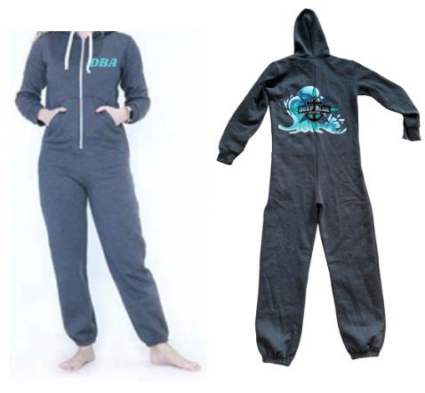Grey Onesie with logo & waves on the back and DBA on front upper chest