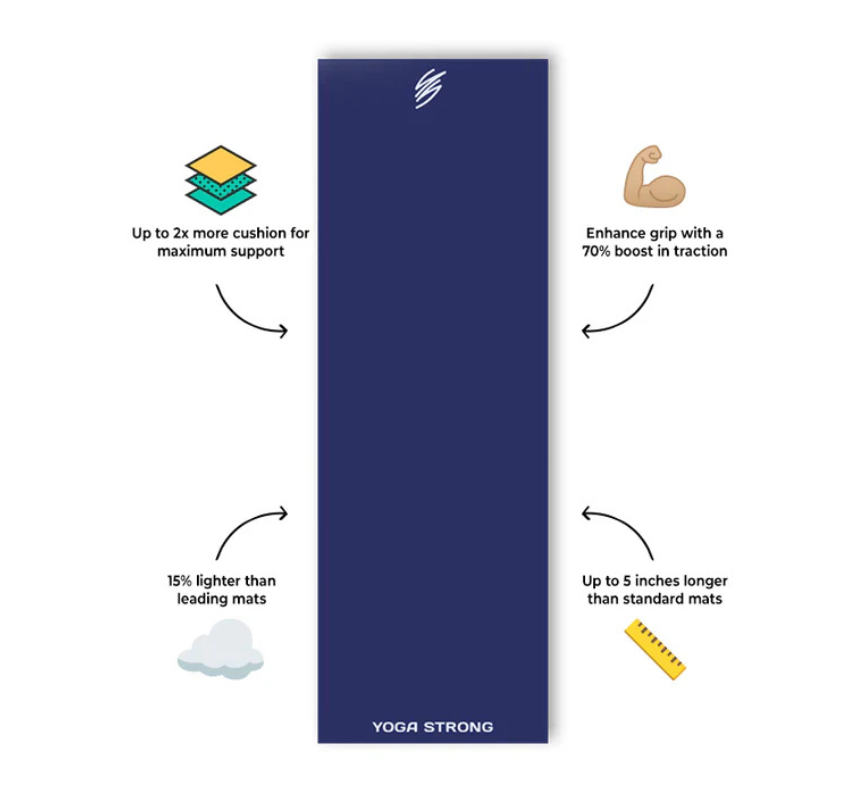 Experience the Yoga Strong Mat, meticulously designed for years by our team of yoga experts, athletes, and health practitioners, to address your exact concerns and provide unparalleled stability, confidence, and comfort.