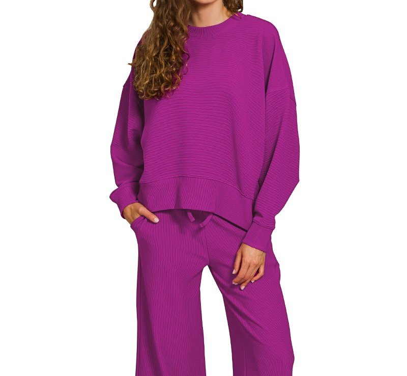 Ribbed Round Neck Pullover & Pants Set