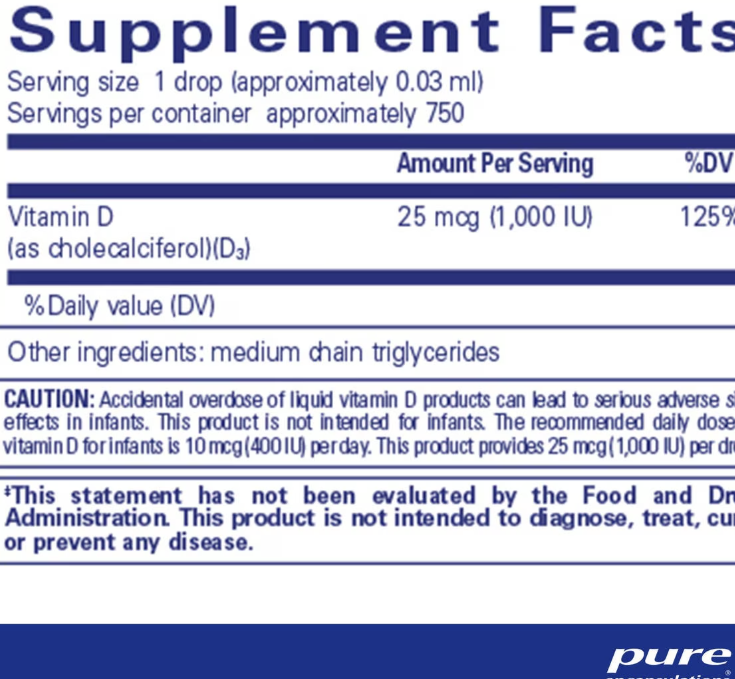 Vitamin D 3 liquid: As a dietary supplement, take 1-7 drops daily, or as directed by a health professional. Consume with fatty food in the am or afternoon.