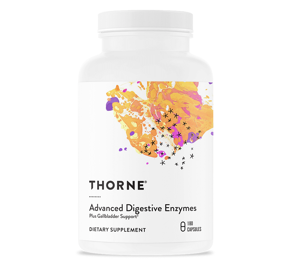 Thorne’s Advanced Digestive Enzymes is a comprehensive blend of digestive enzymes that support good digestion.* A digestive enzyme supplement can be beneficial in circumstances when less than optimal amounts of digestive enzymes are being produced in the body – like during the natural aging process or after gallbladder removal.*